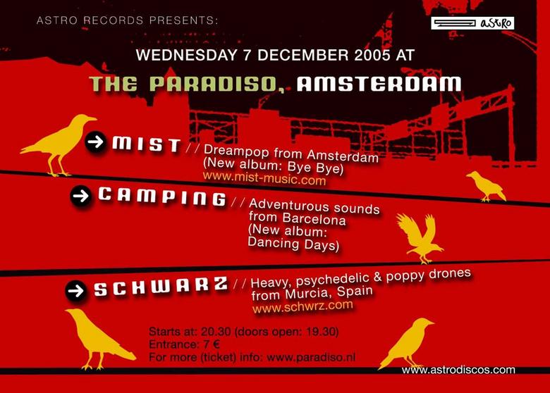 www.8weekly.nl, you can win a Mist-single. Don't forget the upcoming Mist- and Brown Feather Sparrow-cd-presentation show on this Thursday 26 May in the Melkweg. Tomorrow 23 May, Bye Bye will officially be released in Mist's second home country Spain.